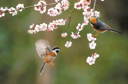 古诗词里的节气风物,洋溢着文化的馨香。图为生机勃勃的春天,小鸟“闹春戏花”。新华社 发