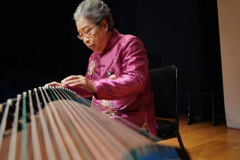 国家级非遗项目“江南丝竹”上海市代表性传承人孙文妍正在弹奏古筝