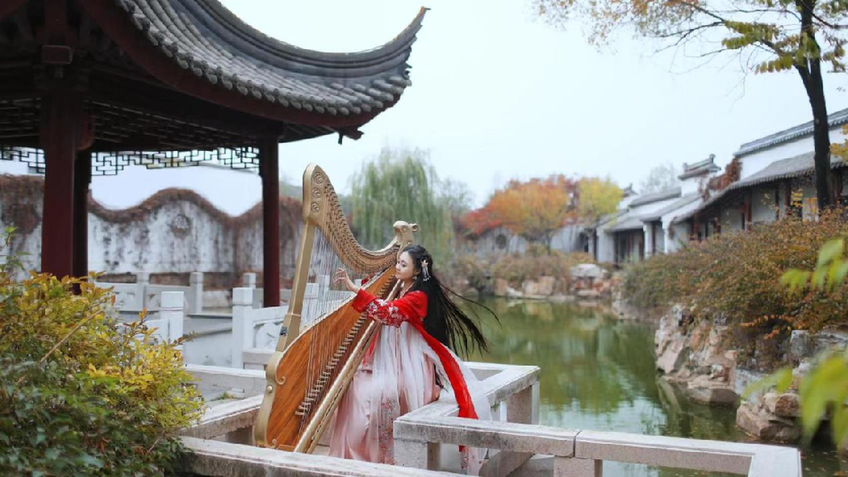 音乐人满宝酱弹奏箜篌
