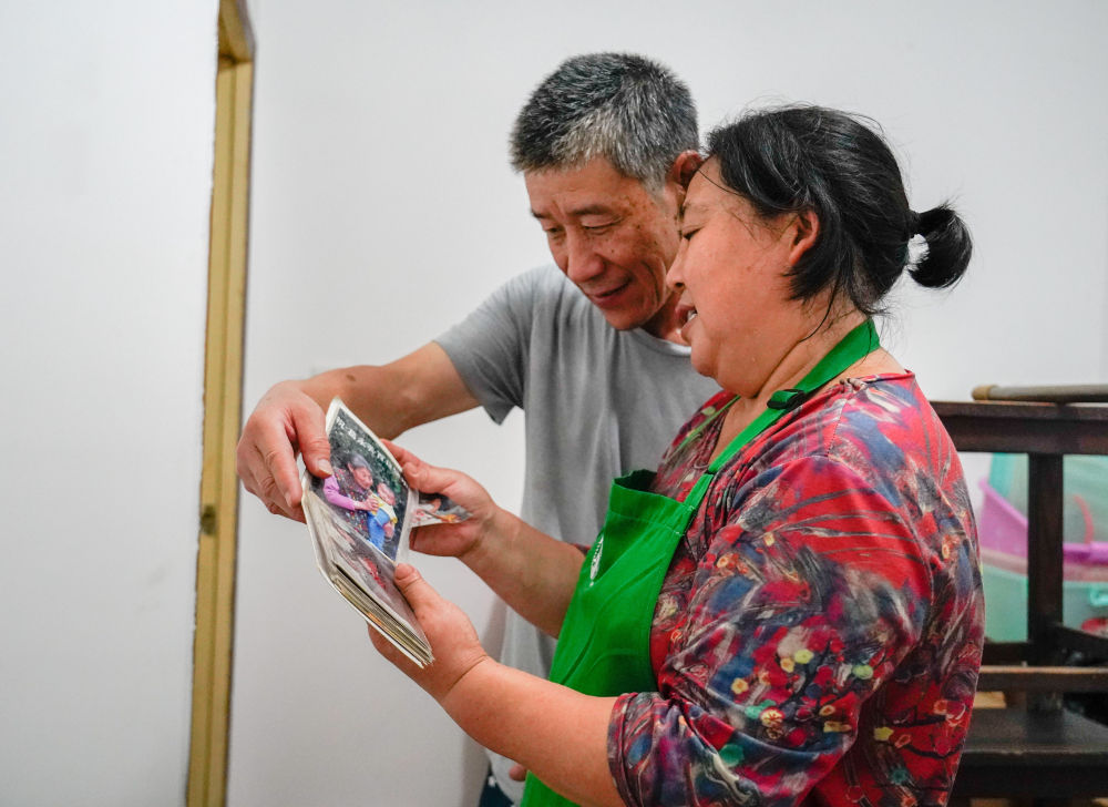 7月13日,蕃瓜弄居民程阿姨在打包整理相册时,和丈夫一起翻看老照片。新华社发(李心怡 摄)