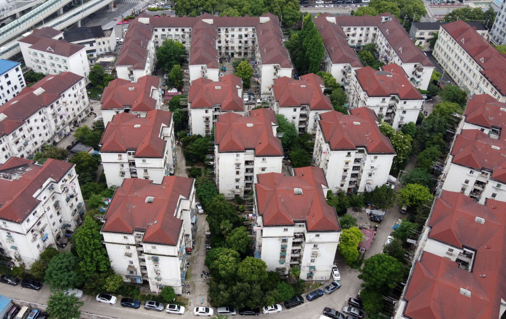 上海市中心城区,上海火车站东南侧,苏州河北岸,川流不息的南北高架桥下,有一片红顶白墙的多层住宅楼房。