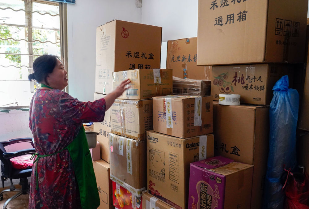 7月13日,蕃瓜弄居民程阿姨在整理打包物品,准备搬场。新华社发(李心怡 摄)