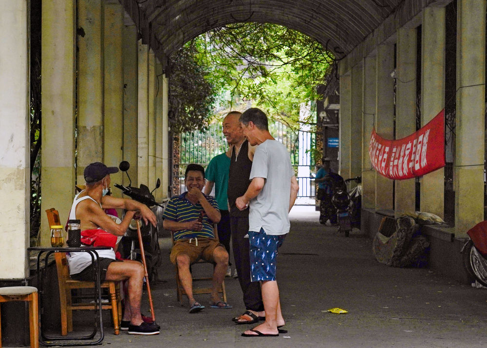 7月13日,蕃瓜弄的居民们聚在一起聊天。新华社发(李心怡 摄)