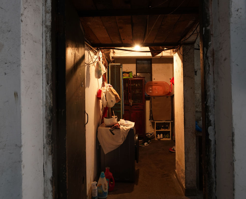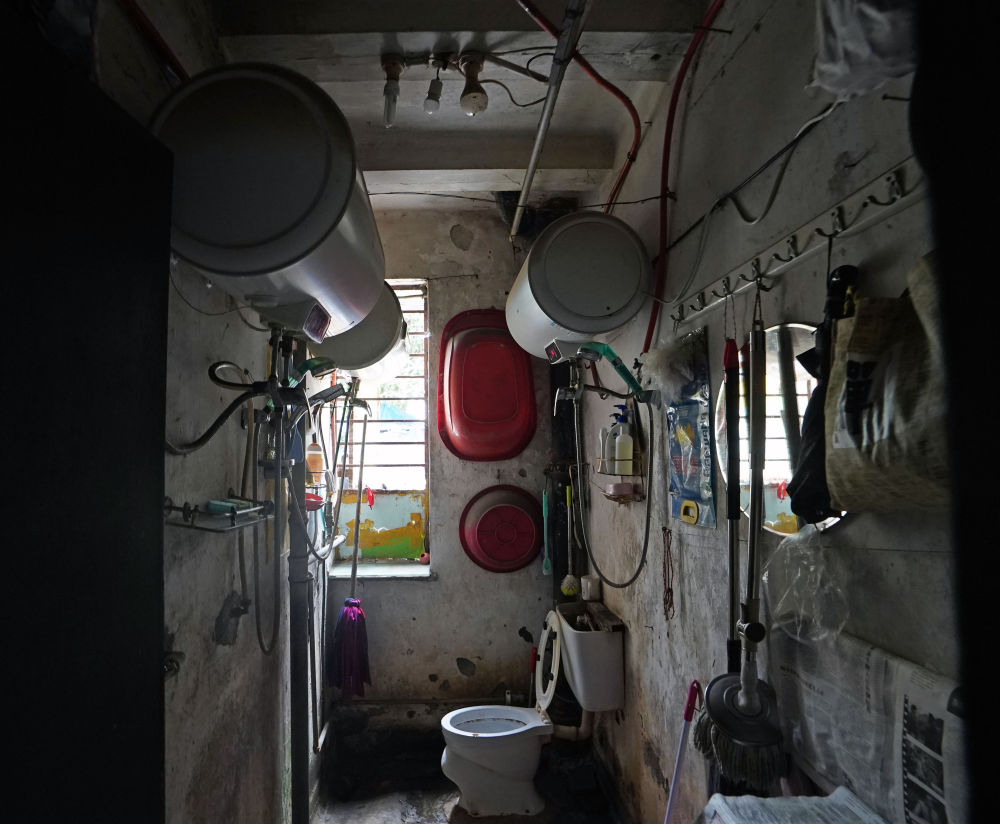 房间内更是拥挤。陈瑜一家三代五口人挤在19平方米“一间半”的房子里,女儿床铺后面,拉上一层窗帘就算隔开了隐私空间。今年50岁的冷梅住在一楼,小梁薄板的房屋结构让三户人共用的厕所总是因为楼上渗水而断电,不得已,在原有厕所旁边重新搭了一个。