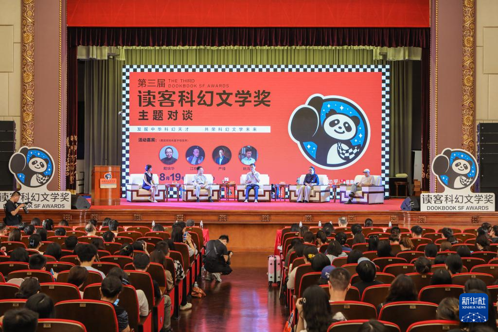 8月19日,嘉宾在颁奖典礼前举行的第三届读客科幻文学奖主题对谈上发言。