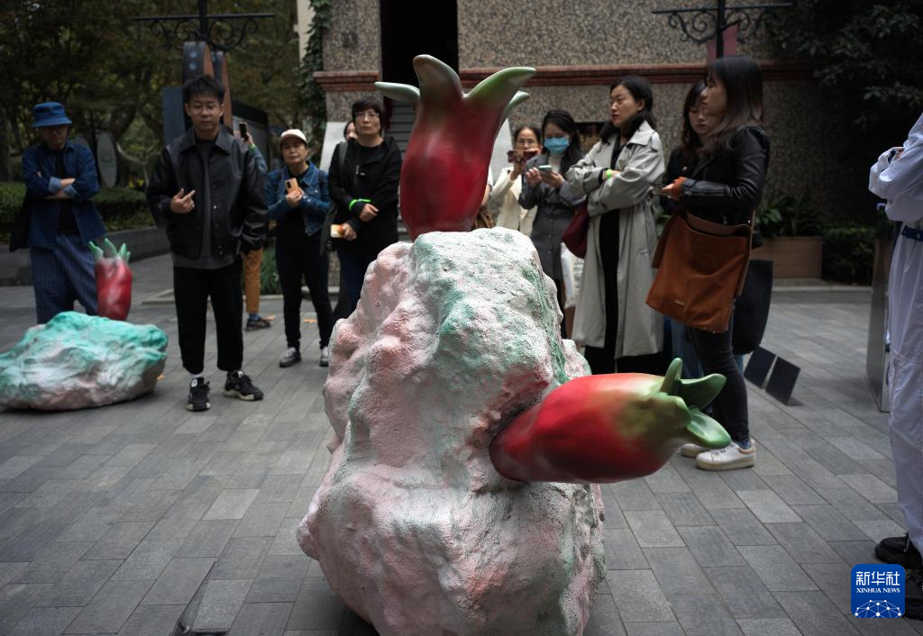 11月8日,观众在上海思南公馆公共空间参观艺术家的雕塑作品。