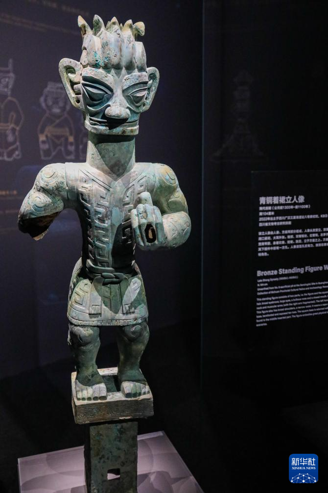 12月22日在“青铜之光”特展上拍摄的青铜着裙立人像。