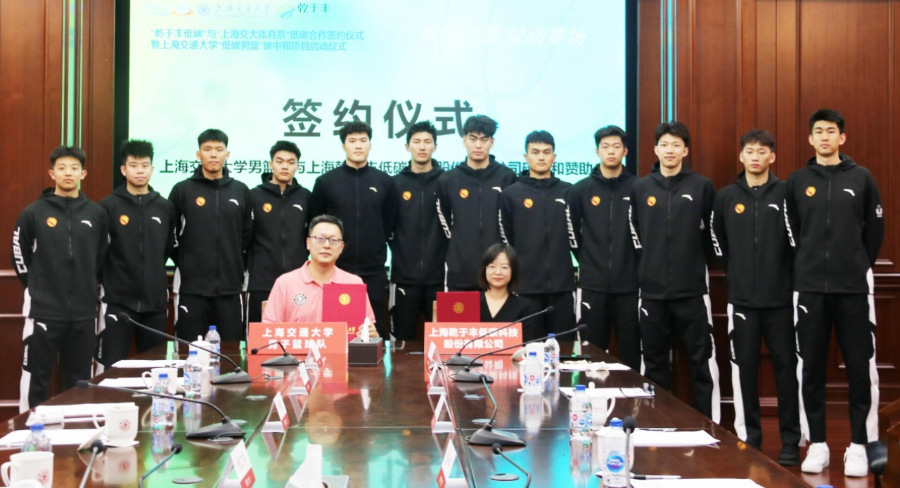 上海交通大学“低碳男篮”的建设工作近日启动。5月24日下午,上海交通大学、上海乾于丰低碳科技股份有限公司携手上海气候周2024,在交大徐汇校区举行低碳合作签约仪式。