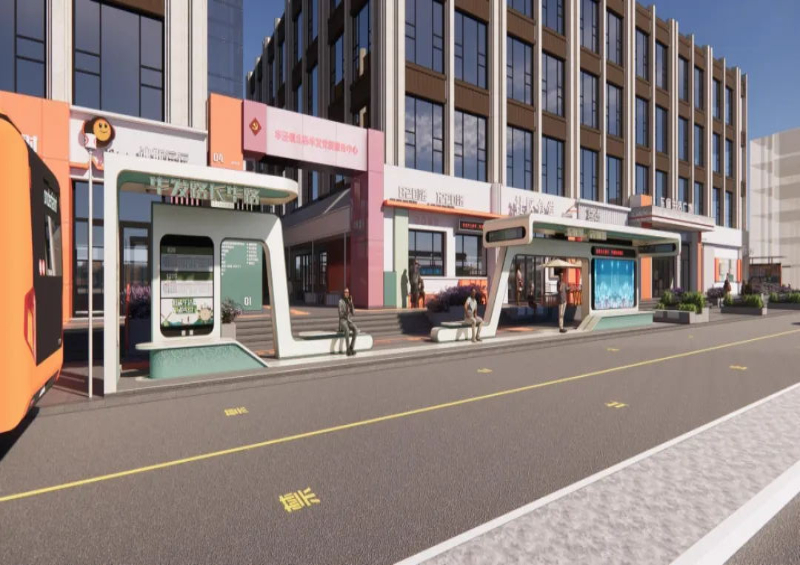 在街区改造中,片区党委联系巴士公司、东阔广场物业和周边居委对节点的改造进行了一场头脑风暴,一个多功能、多色彩、多流线的复合设计逐渐成型。改造后的东阔广场不仅拥有完善的社区公共服务设施、靓丽的公交站台、活力的店招,还增加了一处市民喜爱的口袋花园,公共休憩的空间也得到了拓展,成为华发路的新名片。