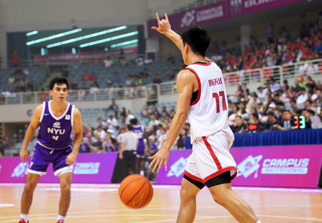 新华网上海8月18日电(记者 刘颖 陈浩明)8月16日晚,别克杯2024五星国际名校挑战赛CAMPUS Invitational在上海交通大学霍英东体育中心打响,上海交通大学和纽约大学男女篮球队进行友谊对决。最终,交大男篮73比56胜纽大男篮,交大女篮69比64胜纽大女篮。