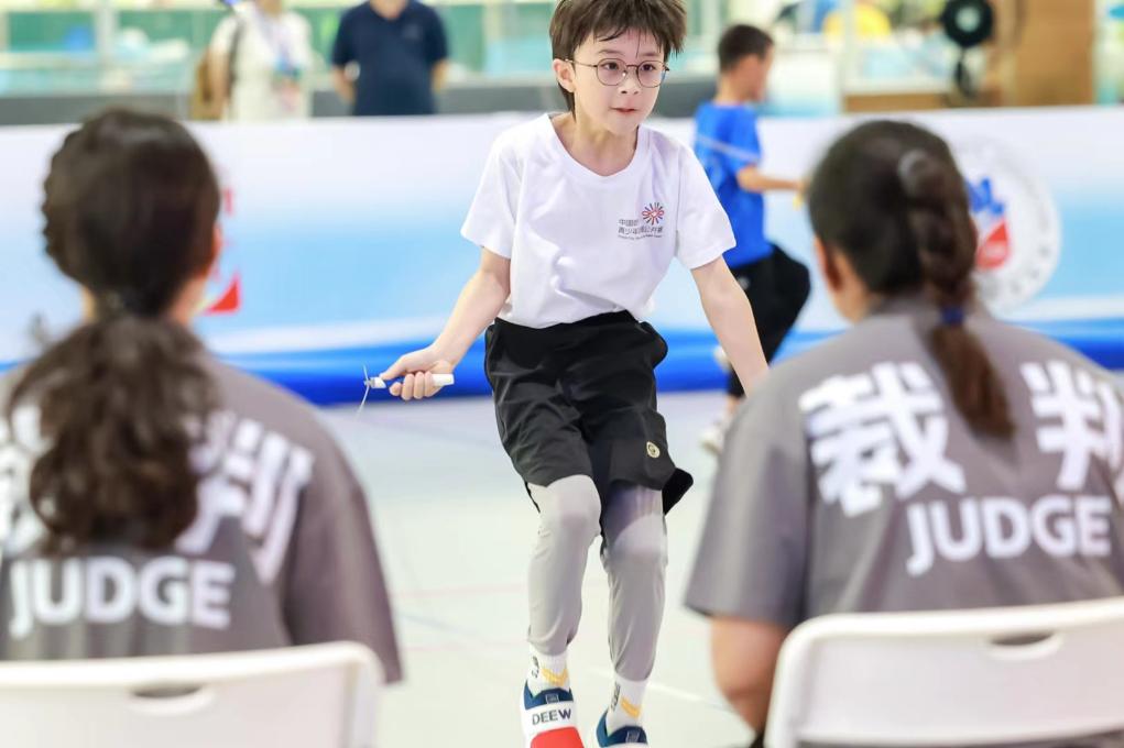 赛制方面,对标国际跳绳联合会的竞赛规程,共设置了儿童组、少年组、青年组三个组别。竞赛内容包括30秒单摇跳、3分钟单摇跳、个人花样赛以及个人花样Battle四大项目,全方位展示参赛选手的速度、耐力和艺术技巧。