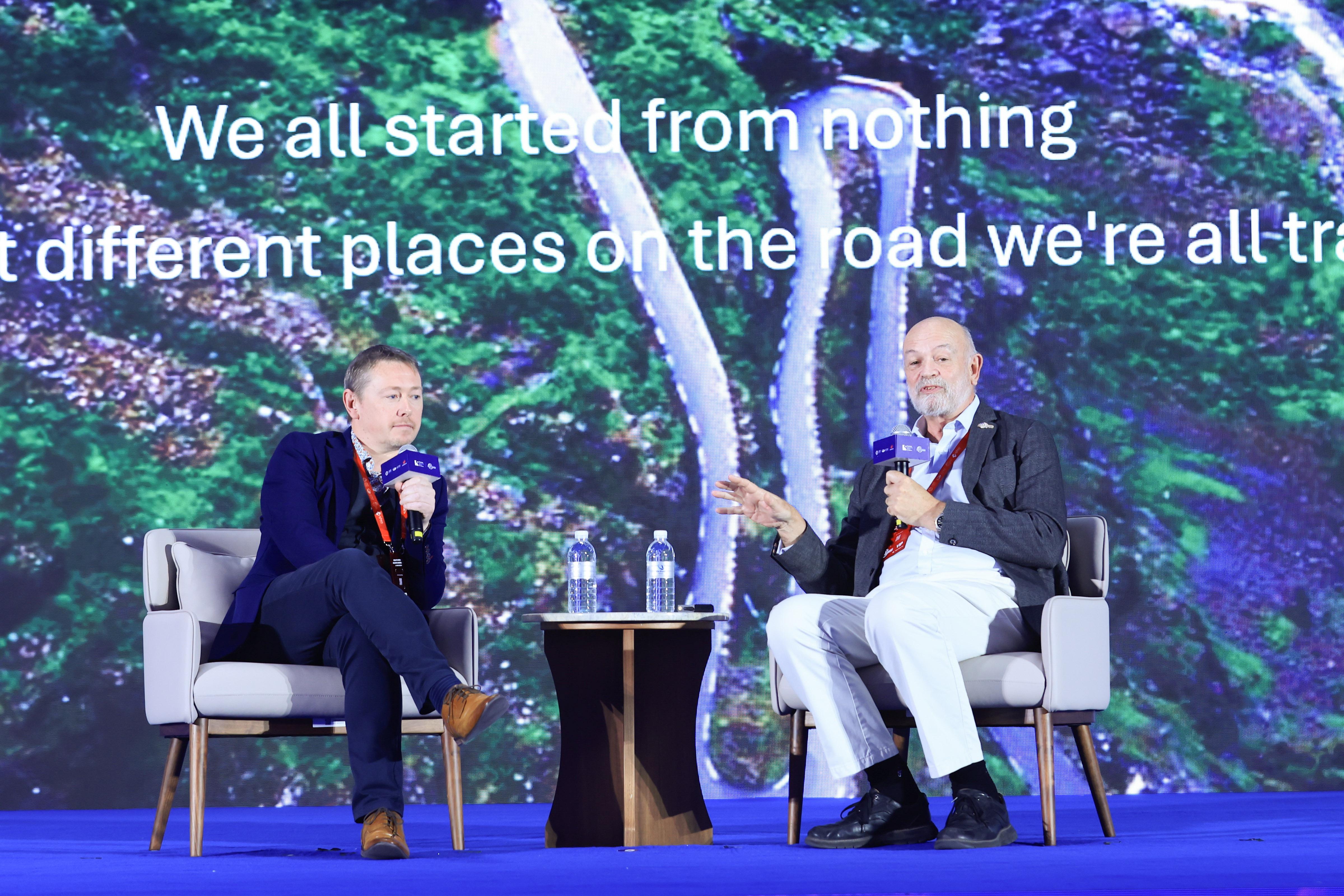 前剑桥大学创业中心主任Tony Raven与英国皇家工程院院士、Paragraf首席执行官兼联合创始人Simon Thomas则围绕大学孵化和地区创新的主题展开对话,深入探讨了剑桥大学创业中心完善的生态系统,以及剑桥大学创业中心在汇聚全球人才和资源、支持企业家追求卓越、推动孕育企业蓬勃发展方面的出色表现。