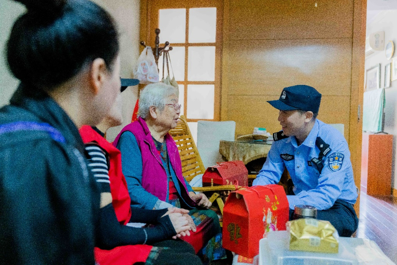 姜经纬拜访辖区内的老年居民。(上海警方供图)