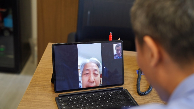 姜经纬和山西“母亲”梁巧英进行视频通话。(上海警方供图)