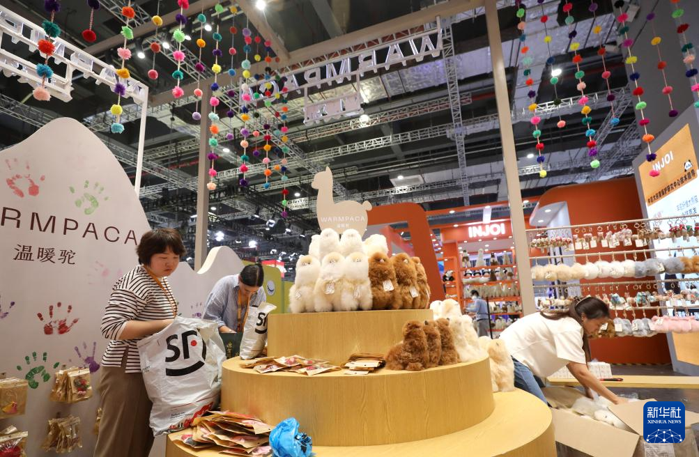 11月2日,工作人员在展馆内布置展台展品。