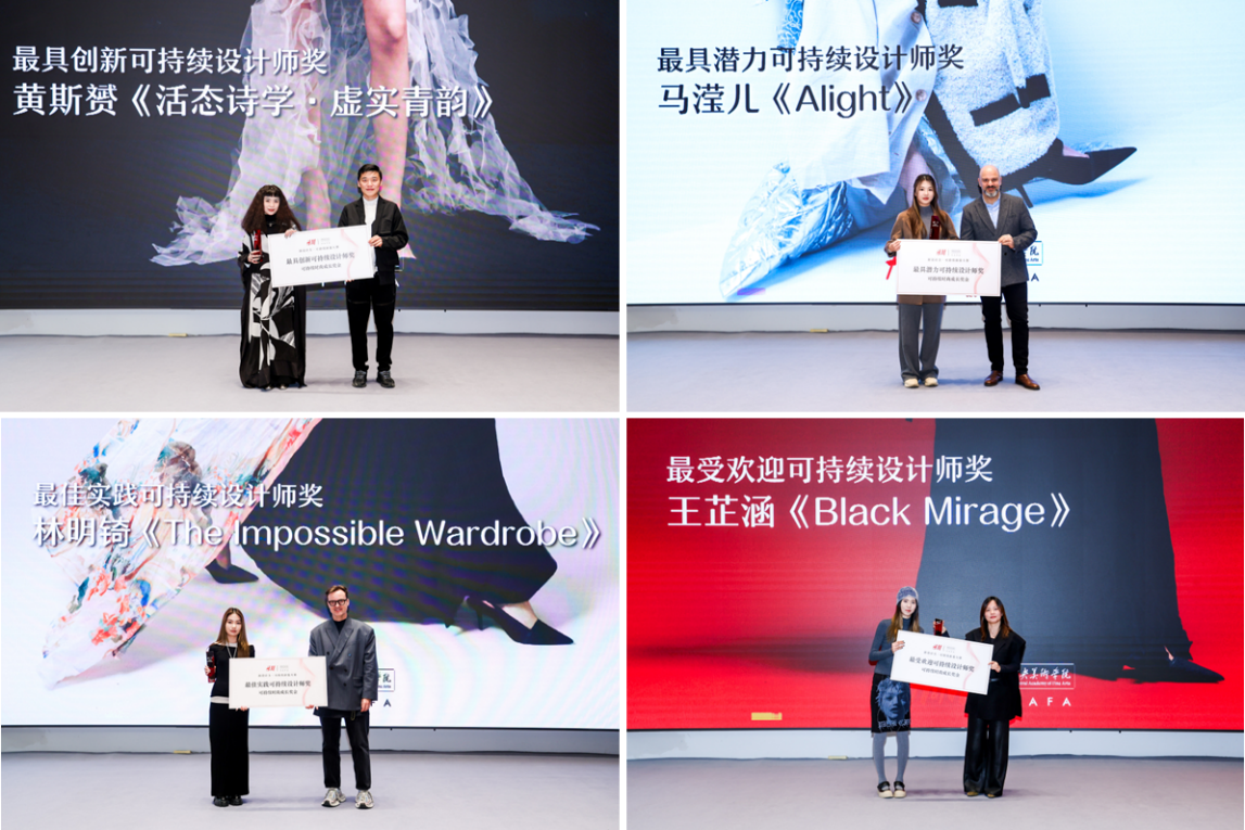 中央美术学院设计学院院长郝凝辉、H&M集团零售大中华区总裁司懿德(Saed El-Achkar)、H&M中国设计中心负责人Andreas Lowenstam及华丽志高级副总裁、华丽智库总监王琼为优胜者颁奖