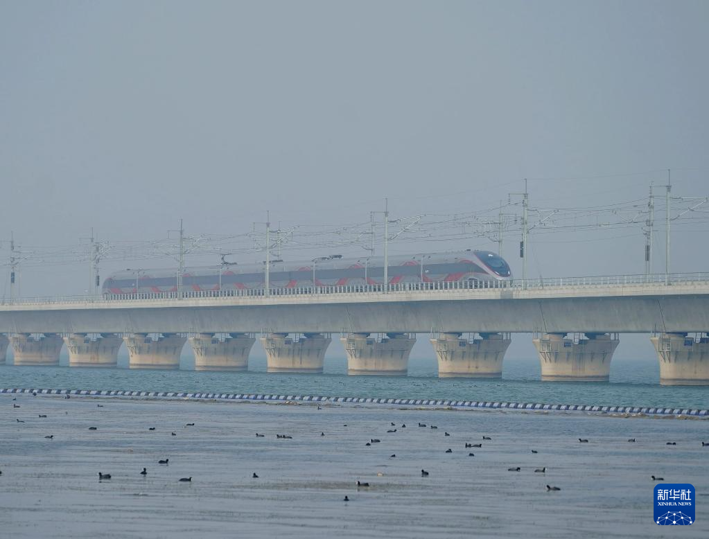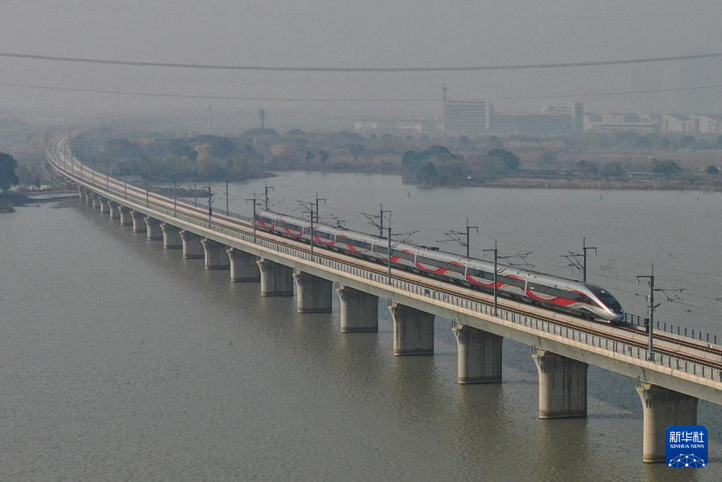 12月26日,列车驶过沪苏湖高铁元荡湖段。