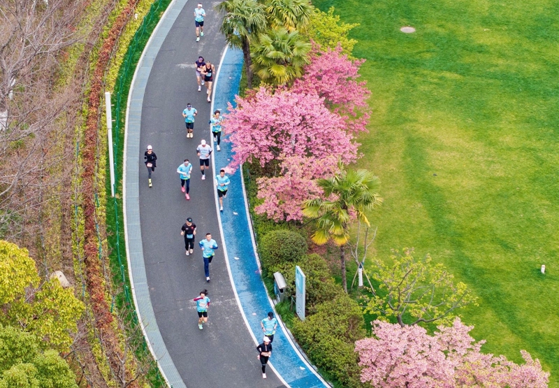 2025上海静安半程马拉松开跑,参赛者跑过花海。新华网 发(受访者供图)