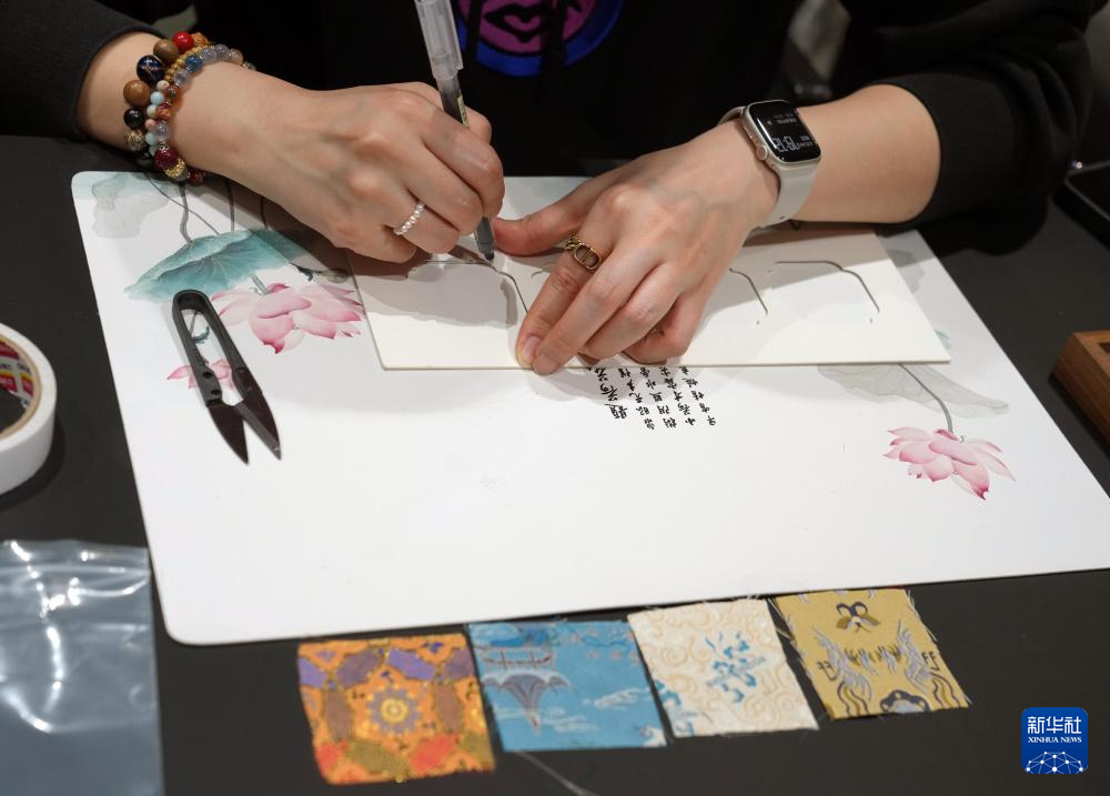 3月20日晚,青年夜校的学员们在“非遗艺术与文化”课程上学习制作宋锦摆件。