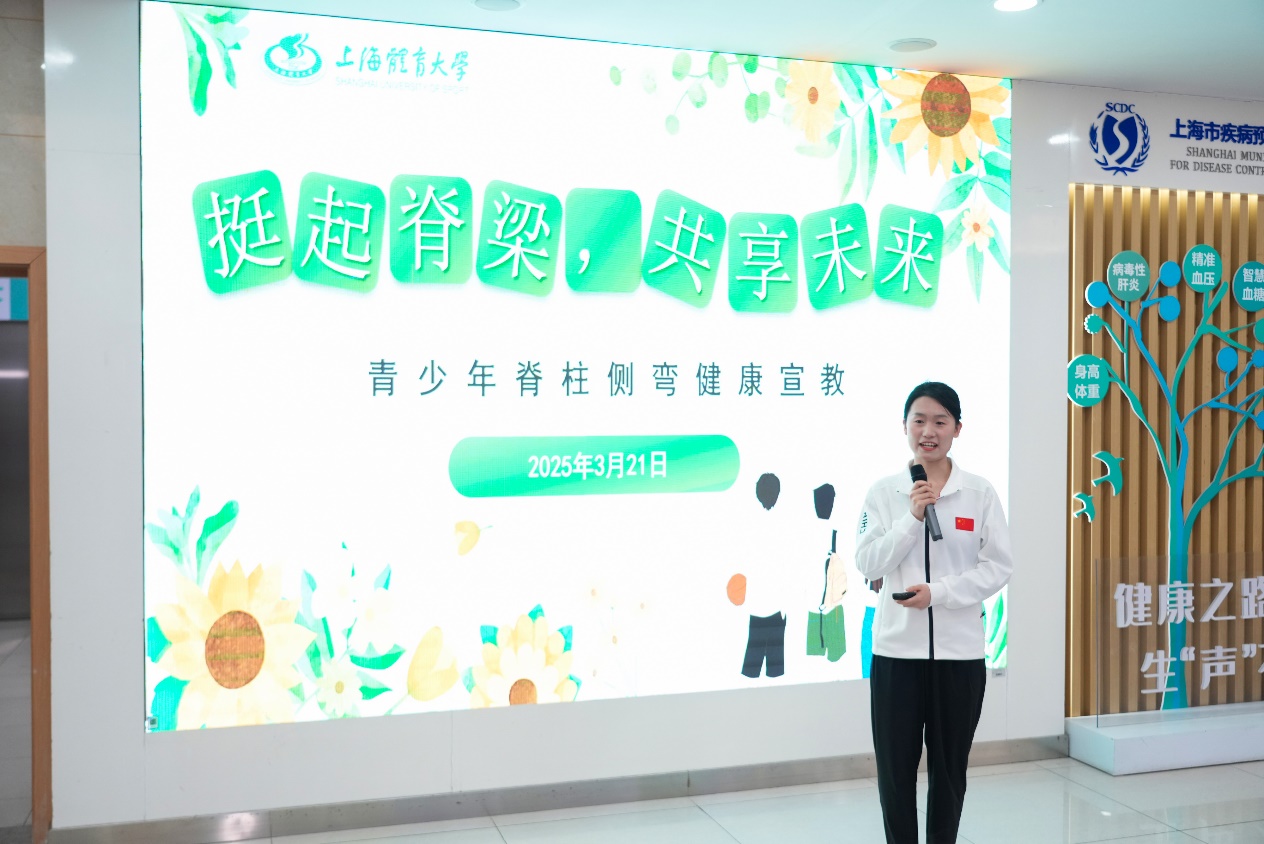 脊柱是人体的中轴,是维持正常体型,保持和维护心肺等重要脏器正常功能的重要骨组织,而对于学生群体而言,错误的姿势体态正持续“侵袭”着他们的脊柱健康。此次,来自上海体育大学运动健康学院的曹媛媛博士以“挺起脊梁,共享未来”为题,以健康体态的重要性为引,围绕脊柱侧弯的概述与危害、筛查与诊断、治疗与康复以及预防与保健等领域进行了详细介绍,并结合“四横一纵”观察法、Adam’s前屈试验以及躯干旋转角测量方式,生动演示了“如何正确进行脊柱侧弯判定”。