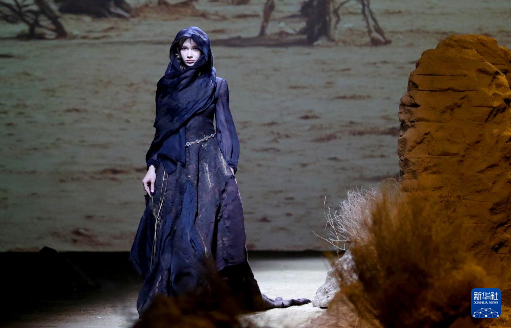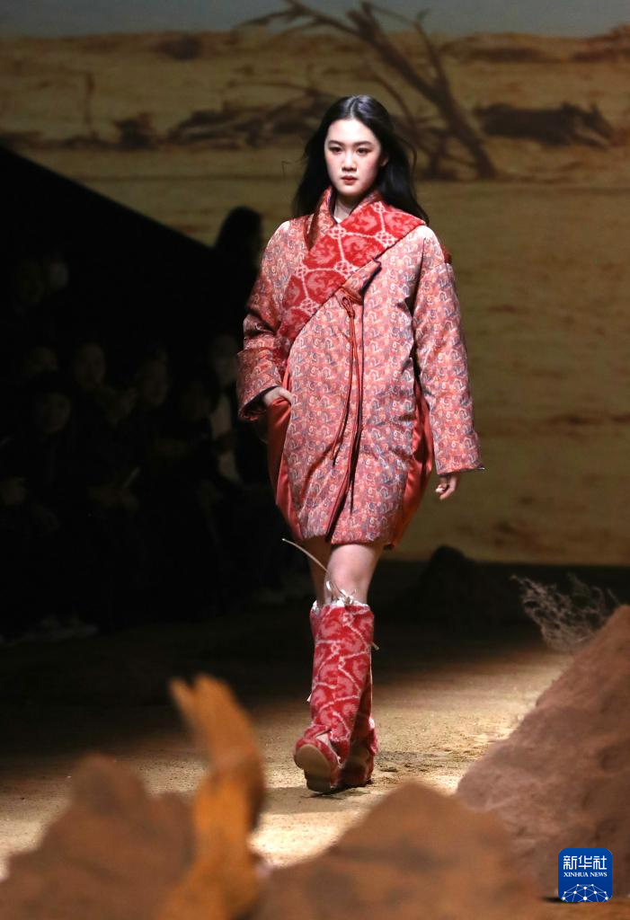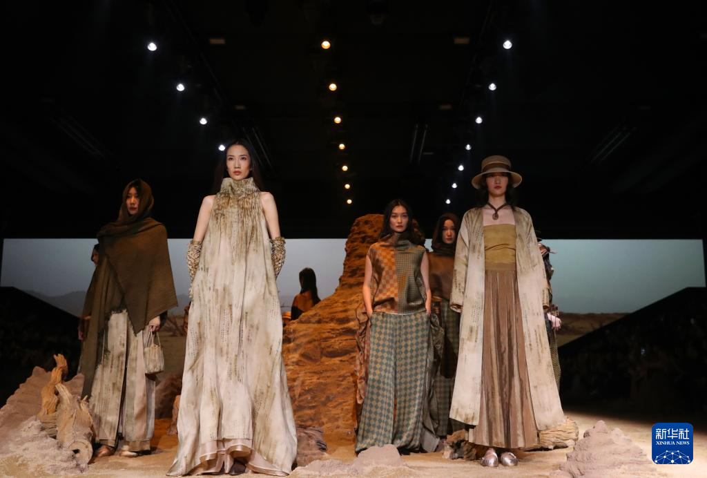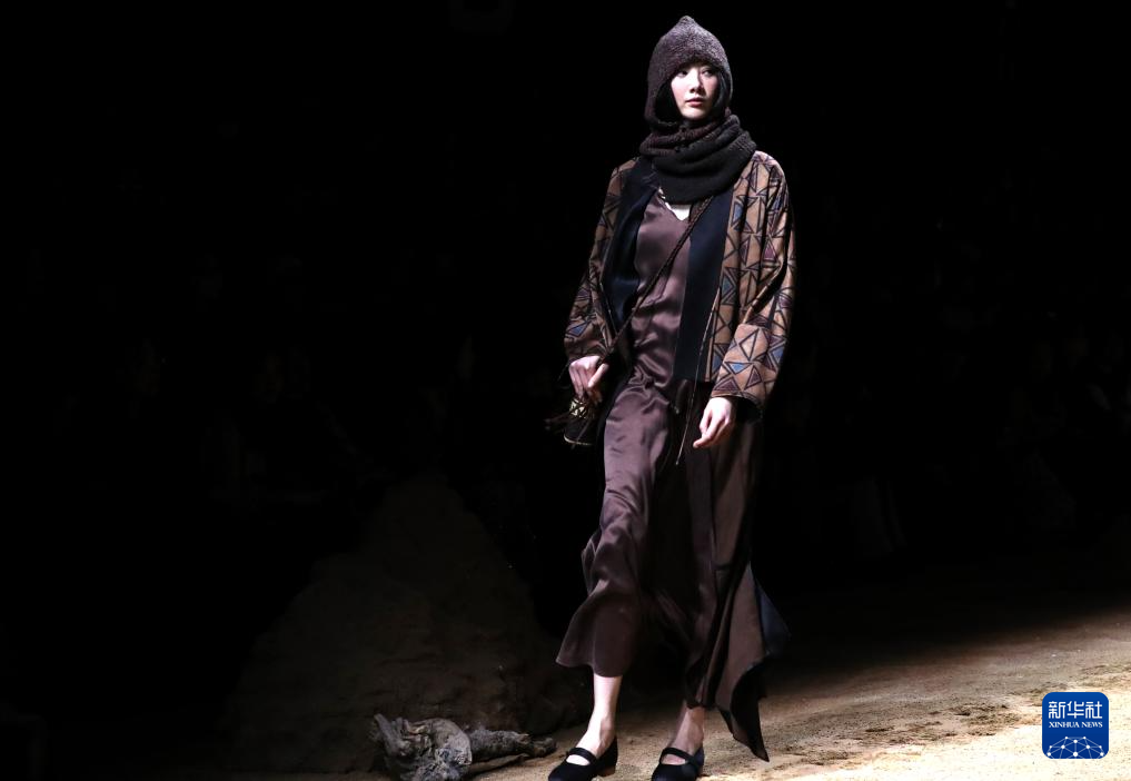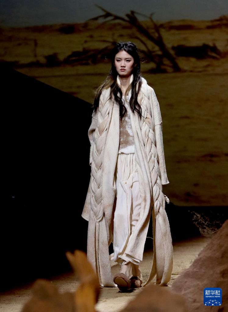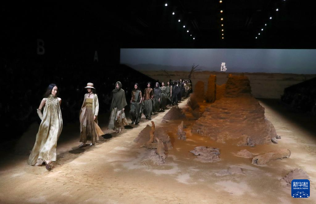 当日,中国服装品牌荷木HEMU“楼兰”新品发布秀在2025秋冬上海时装周上举行。