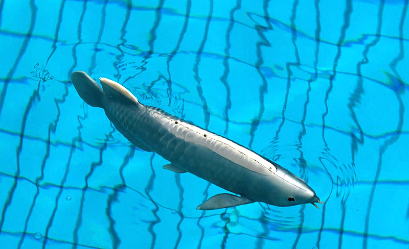 “金鳞”的诞生,是众多前沿科技的结晶。它深度融合了人工肌肉驱动、人工智能算法等核心技术,能够高度逼真地模拟真实金龙鱼的游动姿态和行为习性。其配备的精准姿态控制系统,让“金鳞”在水中畅游时,尾鳍的摆动频率、身体的弯曲弧度都与真实的生物金龙鱼如出一辙,达到了“以假乱真”的视觉效果,仿佛一条真正的金龙鱼在水中自在游弋。