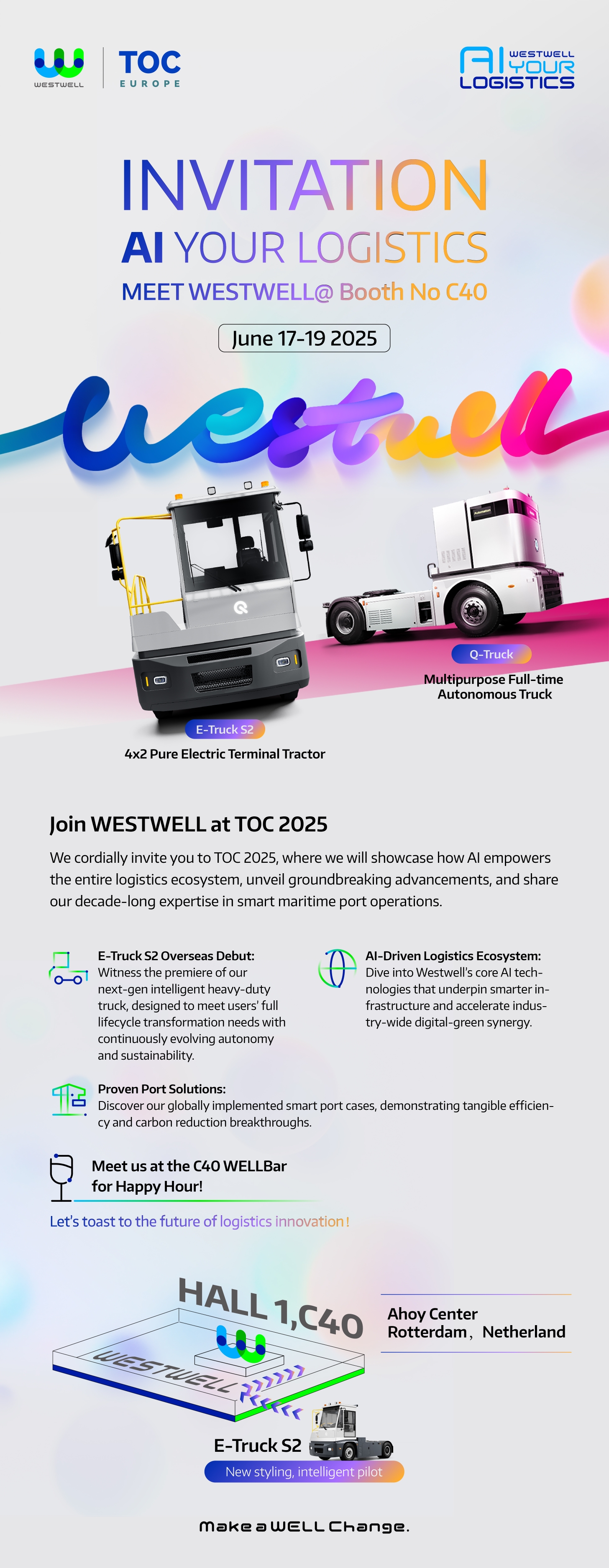 AI重塑全球物流格局之际,6月17日至19日,备受瞩目的TOCEurope2025(欧洲集装箱供应链展览会)即将在荷兰鹿特丹启幕。TOCEurope拥有40余年历史,是在全球拥有巨大影响力的集装箱货运行业盛会,汇聚全球物流行业精英,展示前沿技术与创新解决方案,是物流行业发展趋势的重要风向标。今年,西井科技以“AIYOURLOGISTICS”为主题,将携家族重卡双子星——Q-Truck与E-TruckS2震撼亮相。