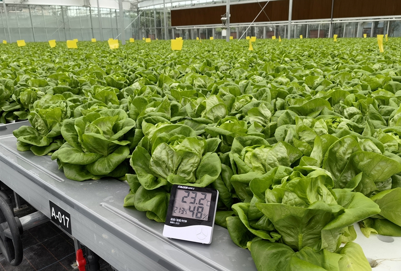 图为稷青科技(上海)有限公司,大棚内生菜生长环境