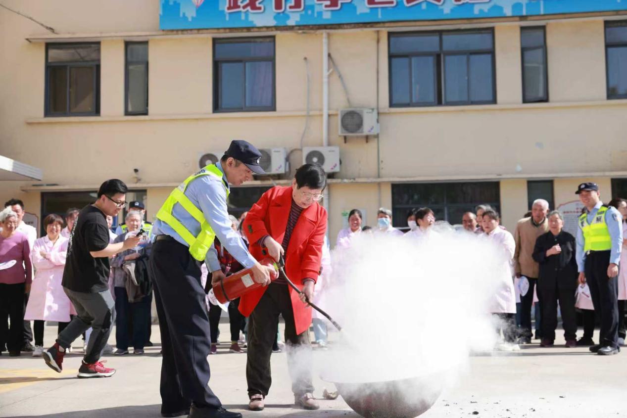 (图为城桥派出所民警在辖区养老院开展消防演练)