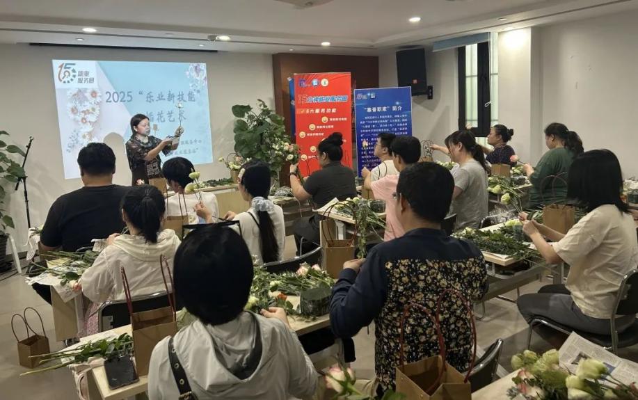 8月7日下午,宜川路街道社区事务受理服务中心联合交西片区“15分钟就业服务站”在中心2楼培训室开展了一场别开生面的艺术插花职业技能培训活动。