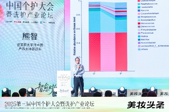 爱茉莉太平洋(上海)研发中心熊智于2025第三届中国个护大会发表现场