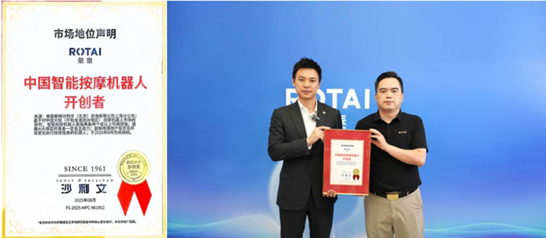 8月8日,行业智库弗若斯特沙利文,联合荣泰健康发布《中国按摩机器人市场研究报告》,并为荣泰颁发了“中国智能按摩机器人开创者”权威声明。
