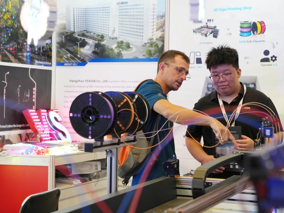9月17日,为期3天的第26届上海国际广告展在上海新国际博览中心开幕。来自国内外约800家展商展示全球先进的广告制作设备、广告材料、LED广告光源及照明、LED显示屏及数字标牌等产品和技术,吸引来自100多个国家和地区的买家及观众前来参观。
