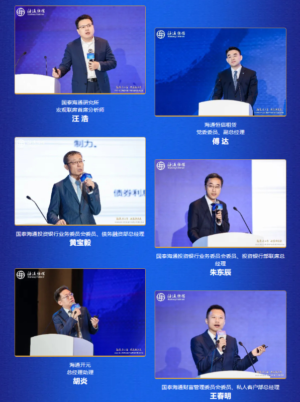 会上,国泰海通研究所宏观联席首席分析师汪浩以《全球变局与产业创新驱动下的中国经济与长三角产业机遇》为题,就中美大国博弈、美联储降息影响及长三角产业发展建议作主题演讲。海通恒信党委委员、副总经理傅达以《聚力发展 共赢未来》为题,就恒信租赁产业生态布局作交流分享。国泰海通投资银行业务委员会委员、债务融资部总经理黄宝毅、国泰海通投资银行业务委员会委员、投资银行部联席总经理朱东辰、国泰海通开元总经理助理胡炎、国泰海通财富管理委员会委员、私人客户部总经理王春明聚焦境内债券融资、投资银行IPO、股权投资、财富管理四个主题演讲,全方位展现国泰海通综合金融服务专业能力与优势。