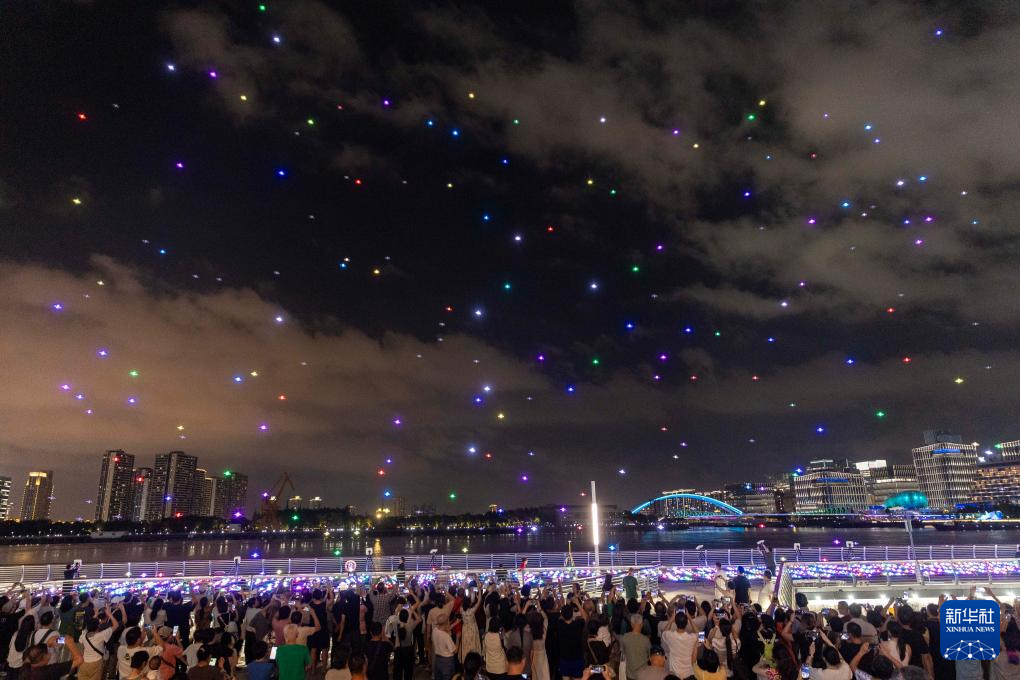9月19日,人们在徐汇滨江主会场欣赏无人机灯光秀。