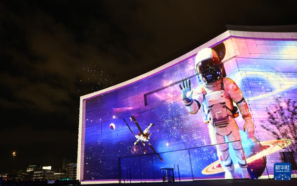 这是在位于徐汇滨江主会场的西岸大剧院外墙上上演的灯光秀(9月19日摄)。