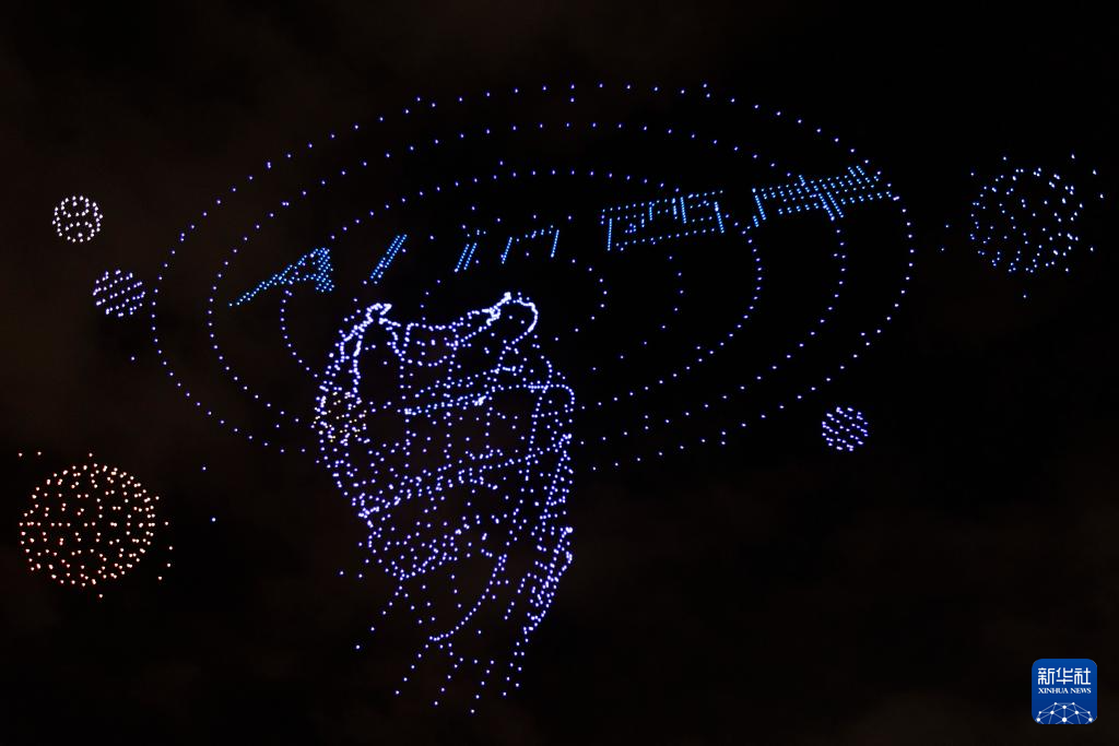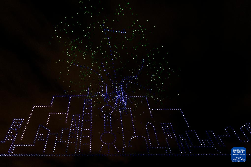 这是在徐汇滨江主会场举行的无人机灯光秀(9月19日摄)。