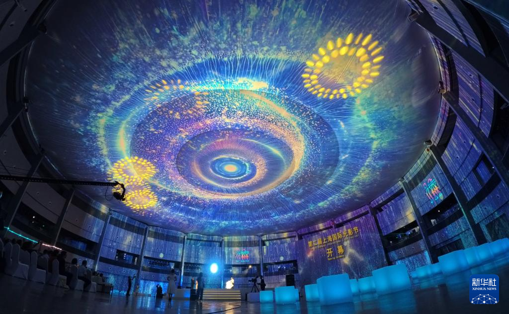 这是在西岸穹顶艺术中心举行的第二届上海国际光影节开幕仪式现场(9月19日摄)。