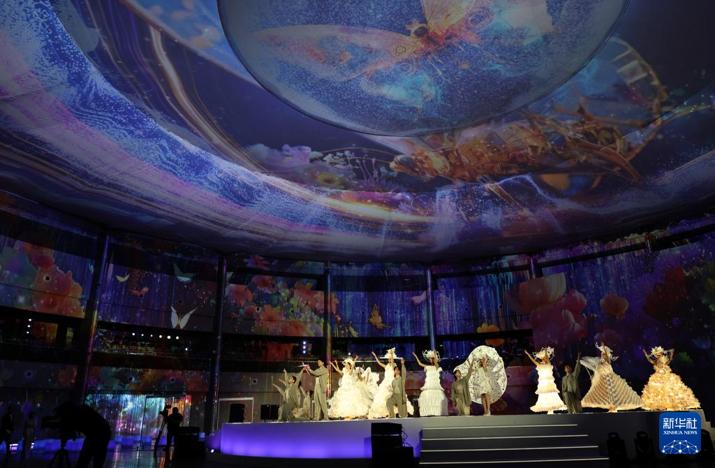 这是在开幕仪式上上演的穹顶灯光秀(9月19日摄)。