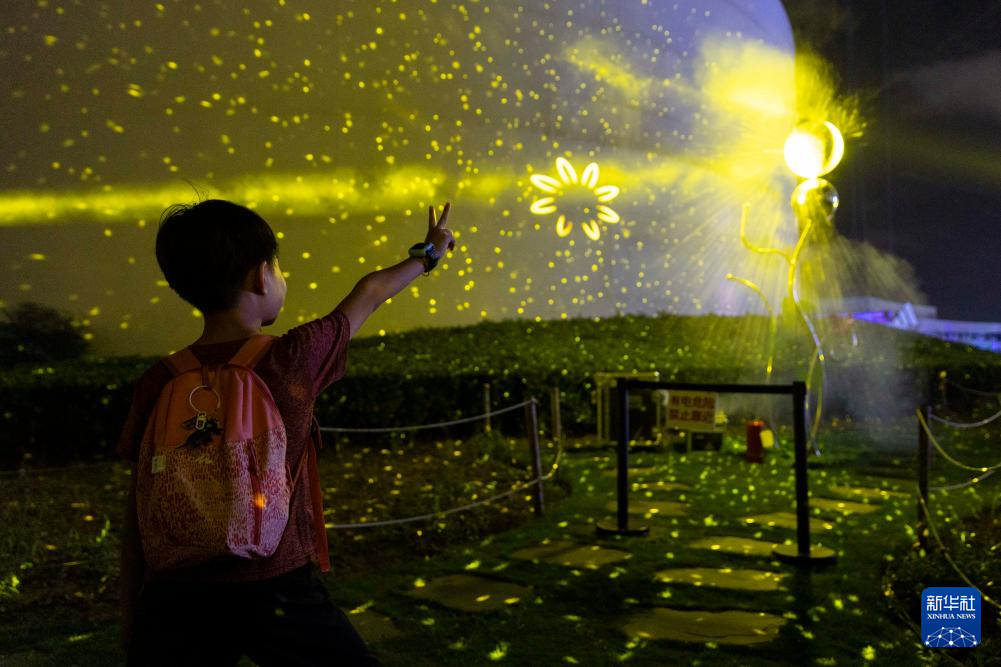 9月19日,一名小朋友在徐汇滨江主会场欣赏灯光秀。