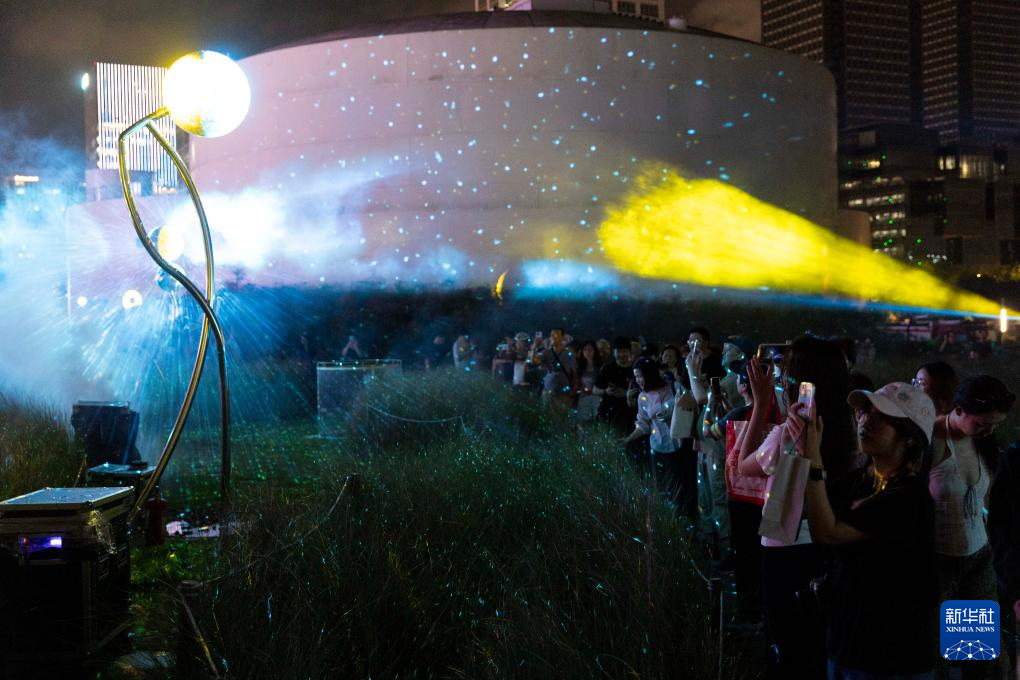 9月19日,人们在徐汇滨江主会场欣赏灯光秀。