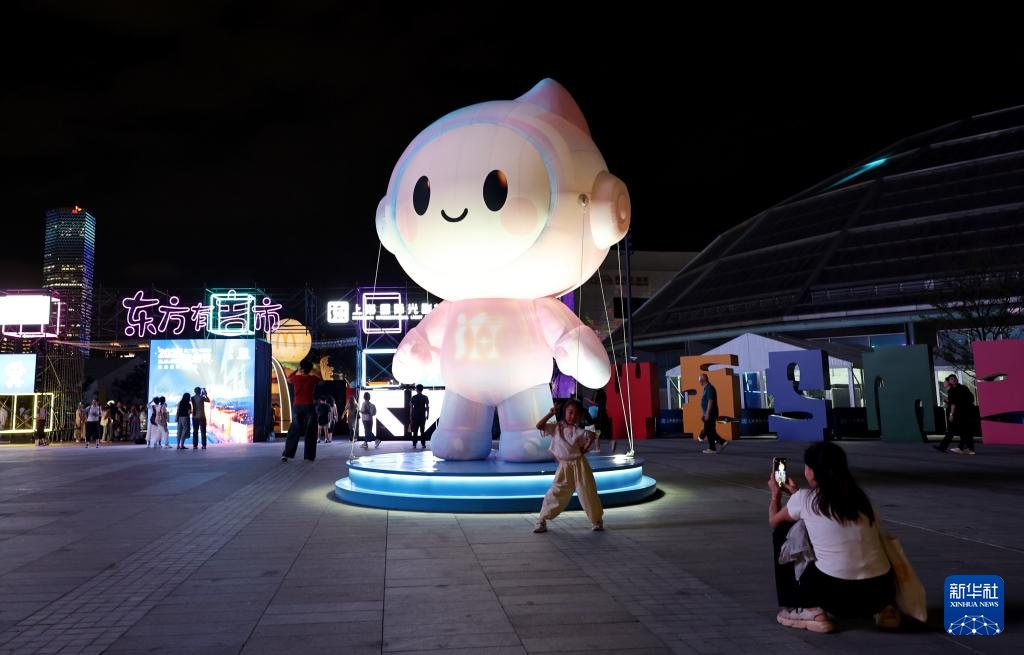 这是在徐汇滨江主会场集市外的第二届上海国际光影节吉祥物“小灵光”造型灯光装饰(9月19日摄)。