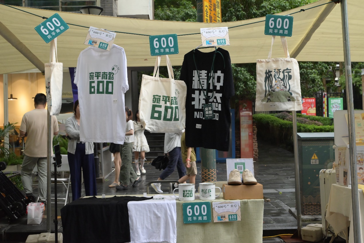 摊位布置别具特色——印有“宛平南路600”“精神状态No.600”“‘勺’来这套”等字样的T恤、帆布袋、茶缸、卡套等文创产品一一亮相,吸引了不少学生打卡挑选。这些兼具实用性与情感共鸣的“600号来信”衍生品,以别样创意融入校园生活,为青年群体带来更多可触可感的心灵疗愈体验。