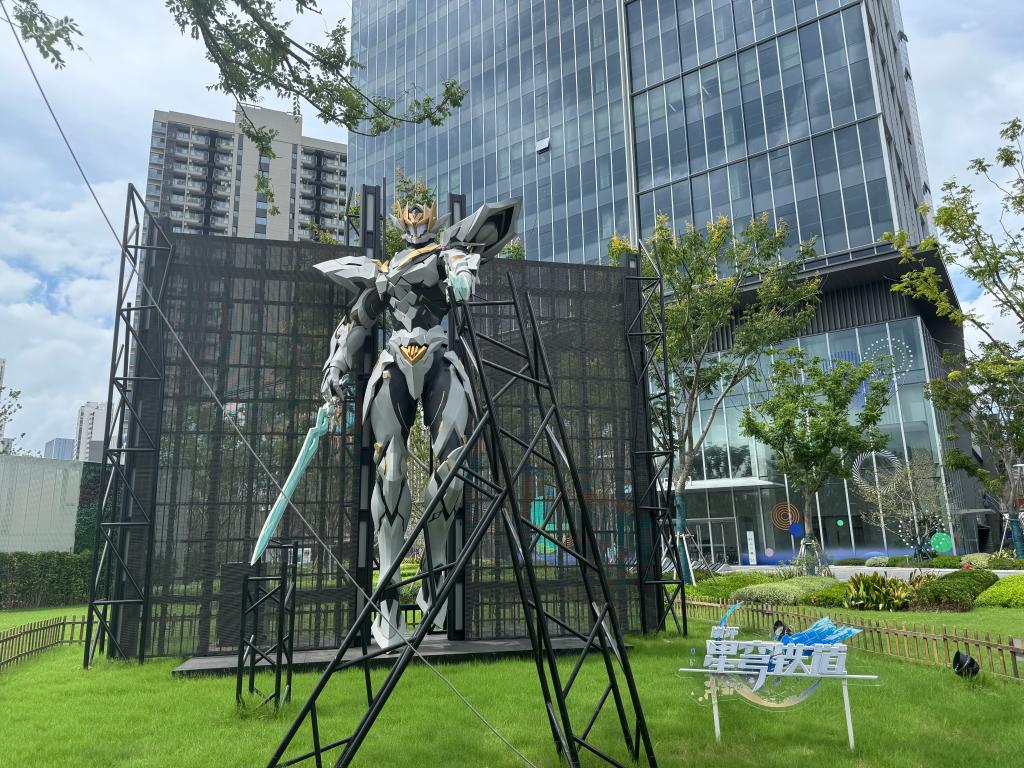 “听说这里建成后,我特意从江苏南通赶来打卡体验。”二次元爱好者小玉告诉记者,她背着装饰了动漫徽章的“痛包”,在萨姆机甲前拍照。像她这样的游客不在少数,很多人专门前来探访喜爱的游戏公司,并收集“谷子”。