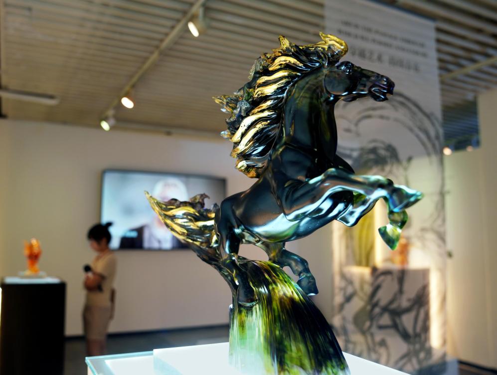 新华网上海9月26日电(记者 潘清 刘颖)以“信念决定不凡——从一念,跃腾千里”为主题,知名琉璃艺术家杨惠姗琉璃马雕塑作品特展近日在上海琉璃艺术博物馆揭幕。包括为即将到来的农历马年创作的12件最新作品在内,20多件以马为主角的琉璃作品现身此次特展。