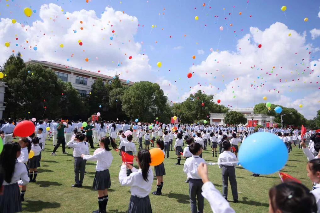 活动尾声,两校全体师生欢呼:“祝福你,中国!我爱你,中国!”数千只五彩气球同步升空,带着师生对祖国发展的美好期许飞向蓝天,掌声与欢呼声经久不息。现场师生纷纷表示,通过参与此次活动,深刻地认识到和平的珍贵与国家发展的不易。中国部高一学生陆诗慧说:“这是我在宋校参加的第十次国庆快闪活动,当看到成百上千个彩色气球飞扬在湛蓝的天空,我的内心仍然会感到无比震撼和激动。”
