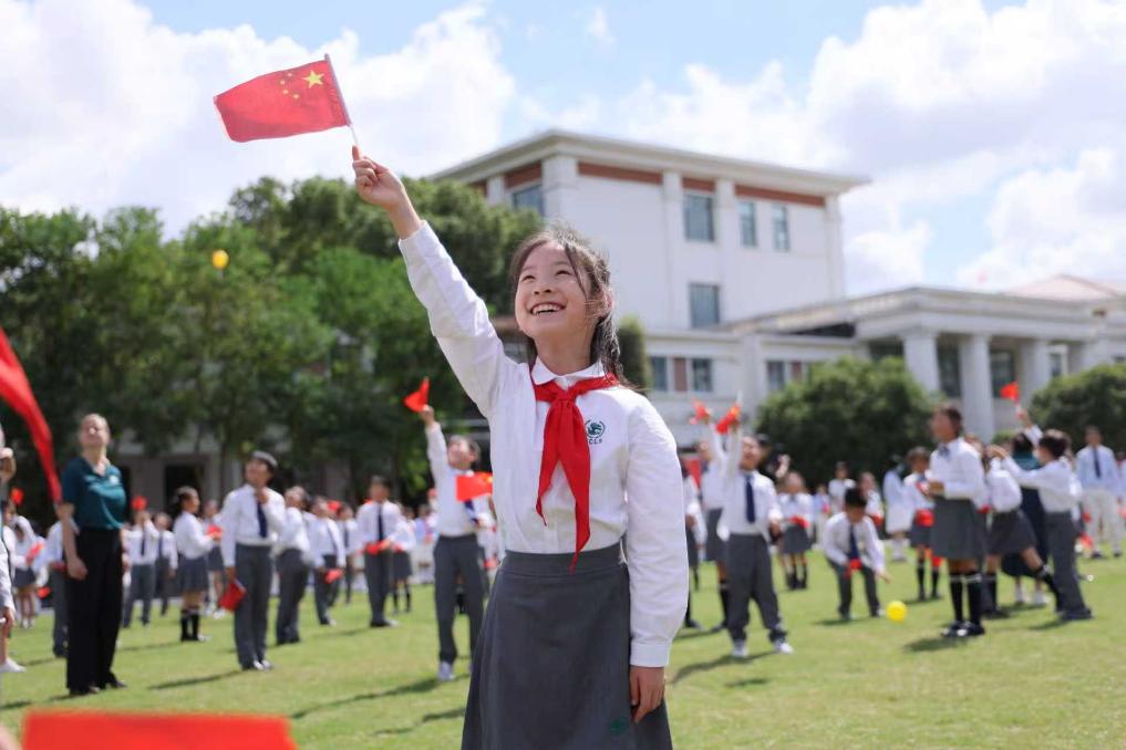 国庆快闪是宋庆龄学校9月“爱国月”主题活动的重要组成部分与生动实践。“爱国月”期间,学校还围绕历史传承与家国认知,开展多项活动。