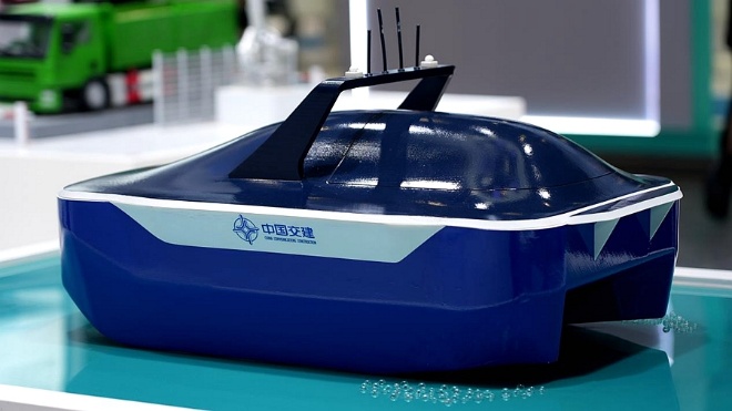 新能源无人控藻船。(中交上航局供图)新华网 发