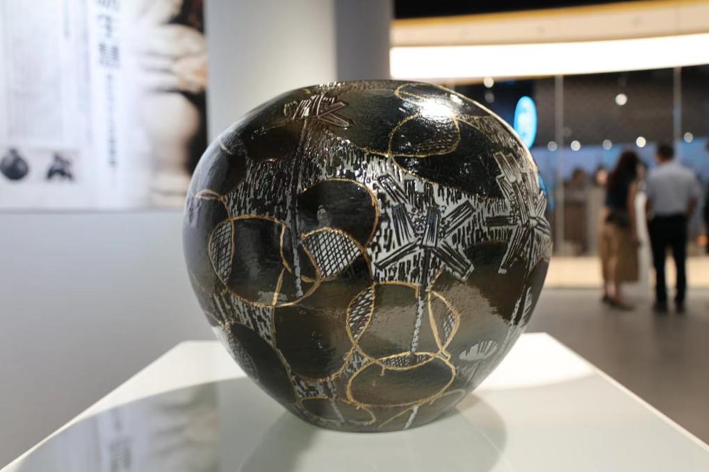 新华网上海10月9日电(记者李荣)尝试将经典白瓷上的青花工艺与黑陶进行结合,借鉴各类绘画方式,力求在黑陶的艺术表现上能符合当下的时代审美。8日,“千年之痕·黑韵新生”艺术黑陶作品展正式开展。