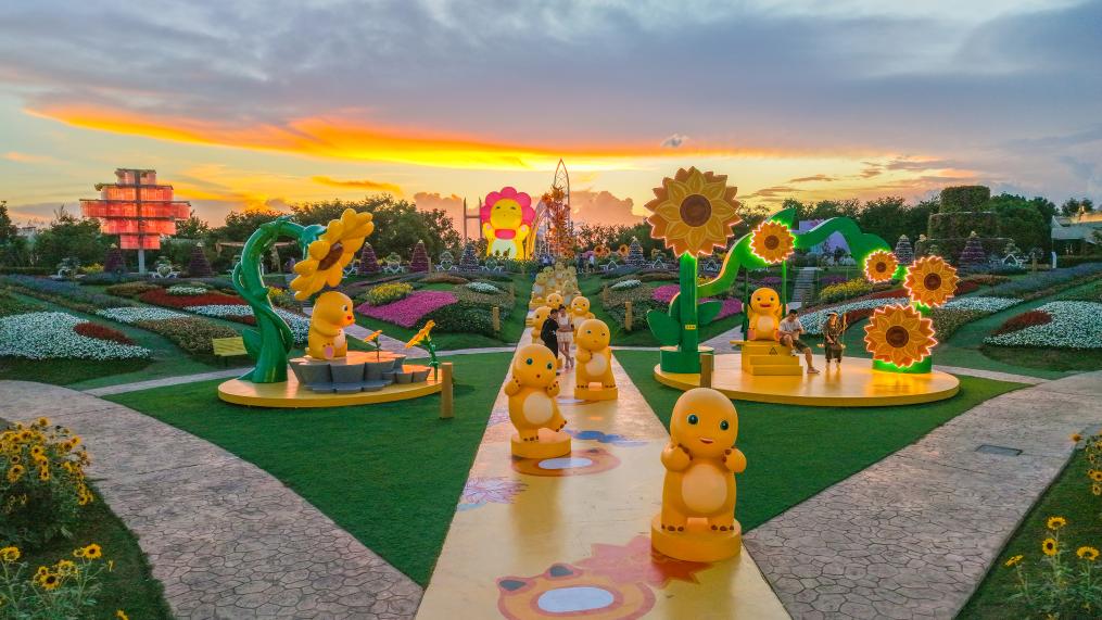 本次花展突破常规的布展形式,创新性地以主题IP“奶龙”领衔四大展览,实现沉浸式IP、花卉景观、跨界艺术、光影夜花园四展合一,为游客打造一个可游、可赏、可感的秋季治愈系童话世界。